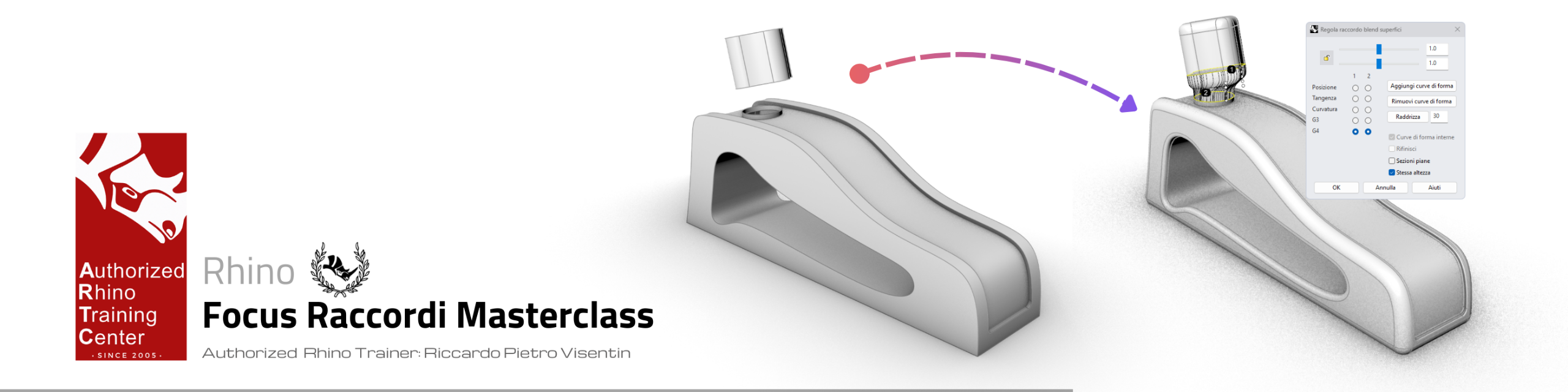 In particolare: a designer, progettisti e a utilizzatori di Rhino che vogliono imparare a eseguire raccordi su curve, superfici, solidi in modo corretto, gestendo le misure senza vincoli