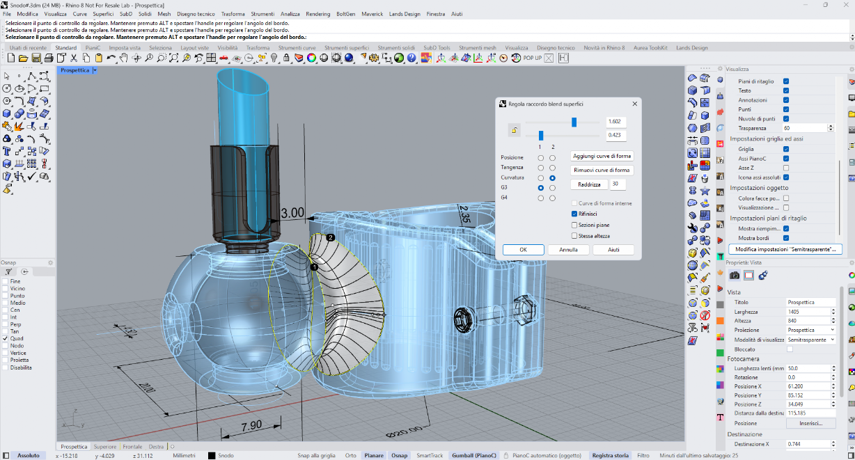 • Strategie di applicazione dei raccordi Blend su Curve e Superfici